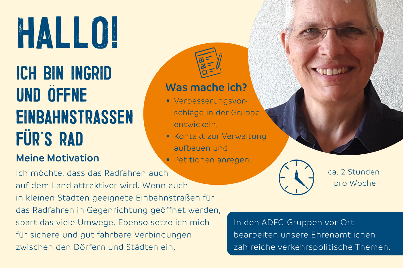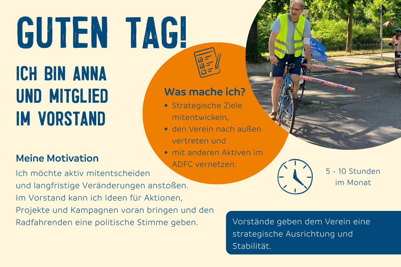 Der Allgemeine Deutsche Fahrrad-Club (ADFC) setzt sich mit seinen mehr als 200.000 Mitgliedern mit Nachdruck für die Verkehrswende in Deutschland ein. Wir sind überzeugt davon, dass eine gute, intuitiv nutzbare Infrastruktur, gut ausgearbeitete Radverkehrsnetze und vor allem Platz für Rad fahrende Menschen auch dazu einlädt, das Fahrrad als Verkehrsmittel zu benutzen. Wir möchten eine sichere und komfortable Infrastruktur für den Radverkehr, damit sich junge und junggebliebene Fahrradfahrende sicher und zügig fortbewegen können.